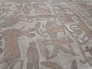 Otrantói mozaik részlet – azoknak a csodálatos állatoknak az ábrázolása, amelyekkel úgy vélték, hogy Nagy Sándor hódításai alkalmával találkozhatott