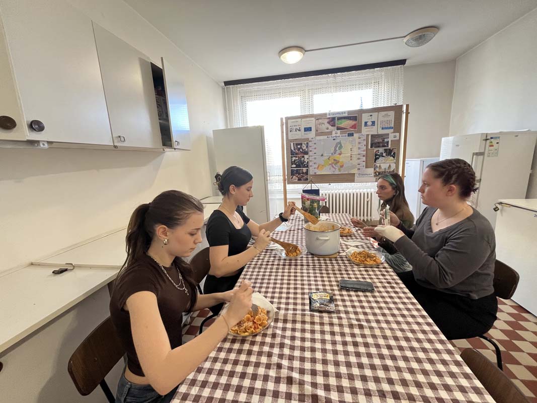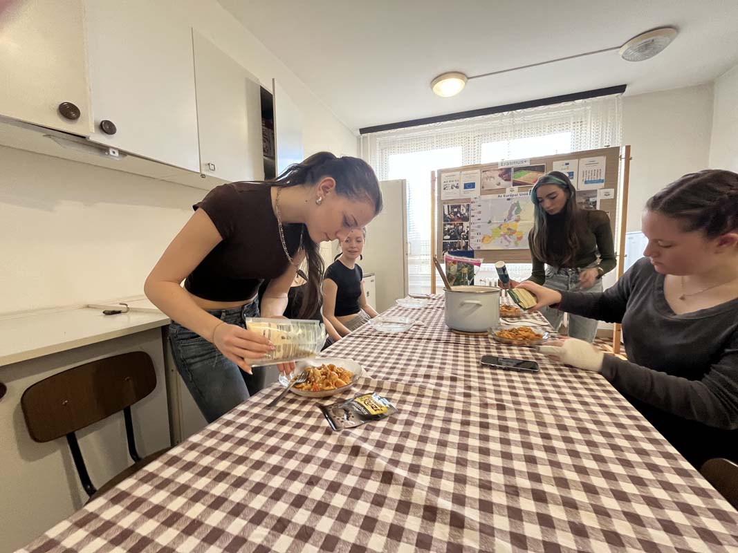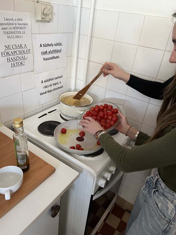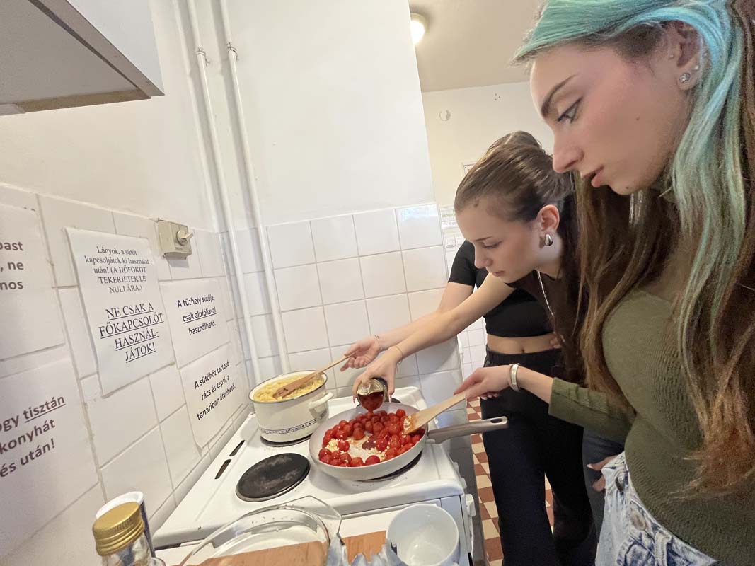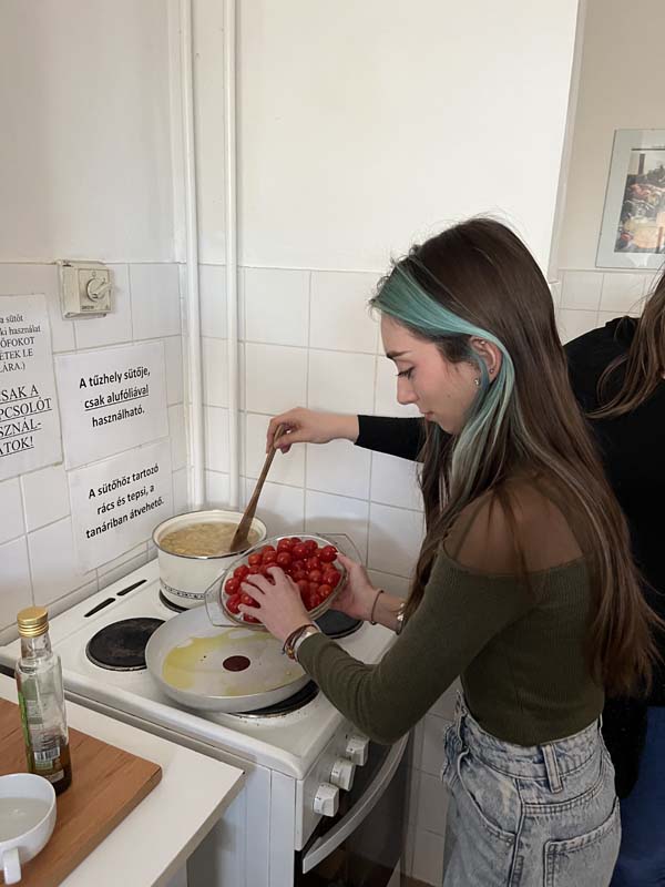 Kollégiumunk néhány, a Kodály Gimnázium olasz szakán tanuló diákja, csoportvezetőjük segítségével egy pugliai fogást készítettek el, melyet az intézmény olasz szakos tanára az Erasmus+ pályázat keretében teljesített mobilitás idején ismert meg, az említett régióban. A kollégium teakonyhájában elkészített étellel azt az igazi nyári, könnyed ízvilágot elevenítették meg, amelyet a mobilitáson a résztvevő megtapasztalhatott. A közös főzés olyan sikeresnek bizonyult, hogy a következő hónapban, kollégiumunk pedagógusa a csoport más tagjaival ismét elkészíti a tésztaételt. A könnyen elkészíthető receptet, a dél-olasz hangulat felidézése mellett azért mutatta meg diákjainak a résztvevő, mert a kollégista diákjaink sokszor szükségét érzik az ételkészítésnek, az intézményünk falain belül. Ez a recept kiválóan alkalmas lesz arra, hogy legközelebb önállóan is megpróbálják elkészíteni. A szószt a Puglia régiójára jellemző orecchiette tésztához ajánlott elkészíteni, de adott esetben a diákok más tésztafajtával is helyettesíthetik, ha a fülecske tésztának a beszerzését kicsit költségesnek ítélik meg. Lássuk a hozzávalókat: