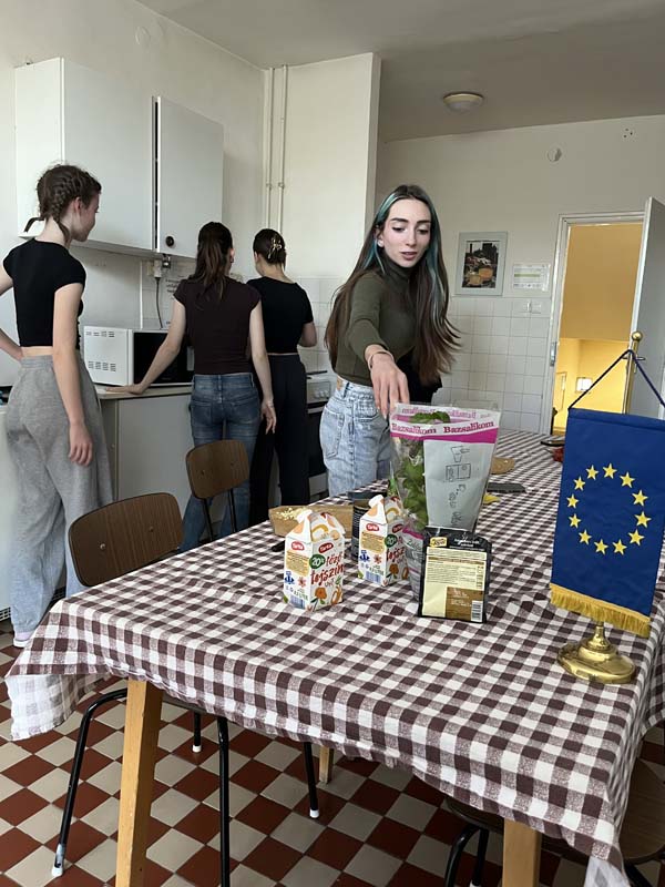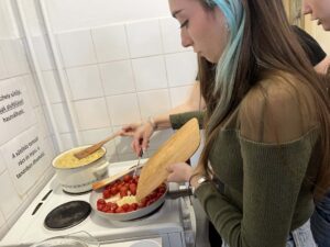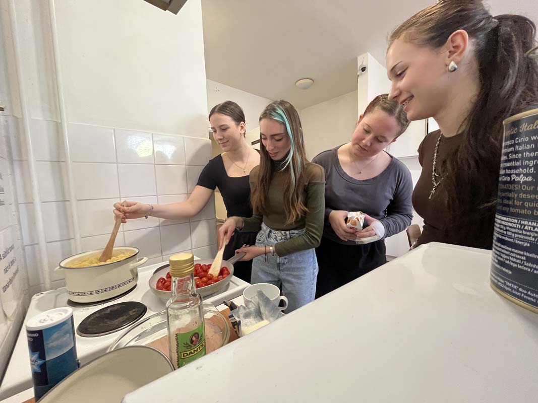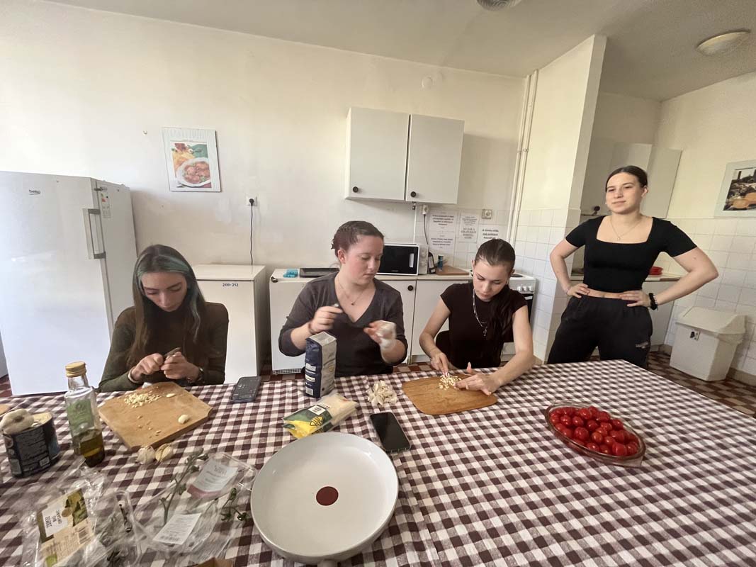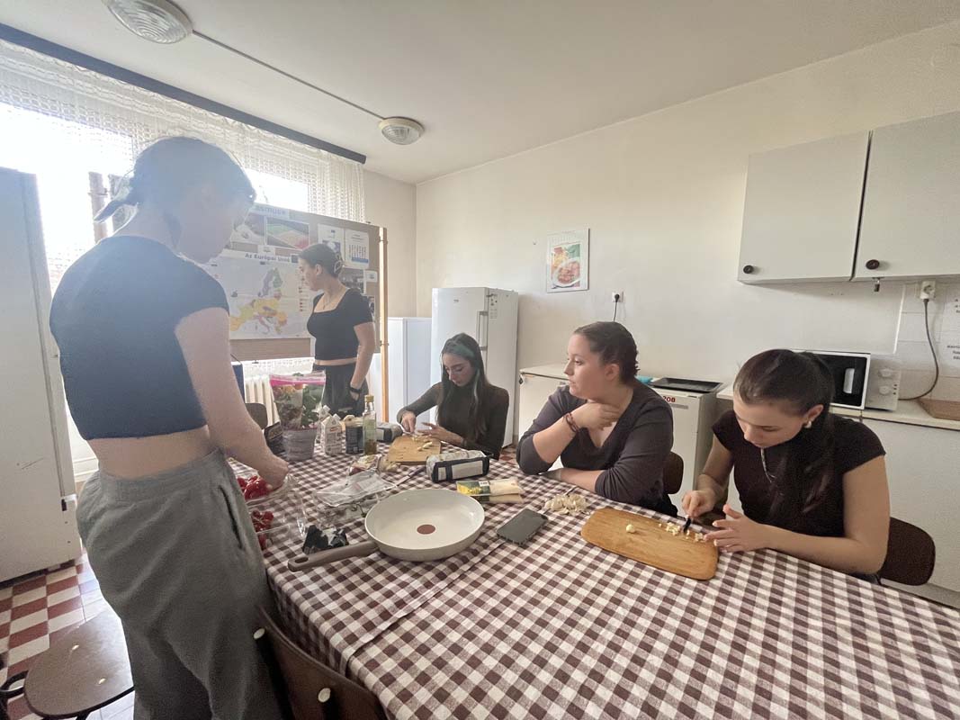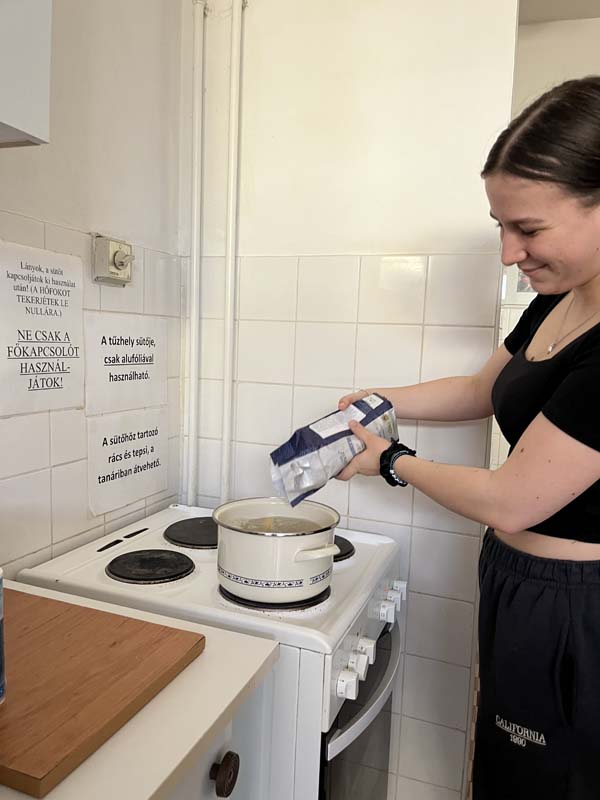 Kollégiumunk néhány, a Kodály Gimnázium olasz szakán tanuló diákja, csoportvezetőjük segítségével egy pugliai fogást készítettek el, melyet az intézmény olasz szakos tanára az Erasmus+ pályázat keretében teljesített mobilitás idején ismert meg, az említett régióban. A kollégium teakonyhájában elkészített étellel azt az igazi nyári, könnyed ízvilágot elevenítették meg, amelyet a mobilitáson a résztvevő megtapasztalhatott. A közös főzés olyan sikeresnek bizonyult, hogy a következő hónapban, kollégiumunk pedagógusa a csoport más tagjaival ismét elkészíti a tésztaételt. A könnyen elkészíthető receptet, a dél-olasz hangulat felidézése mellett azért mutatta meg diákjainak a résztvevő, mert a kollégista diákjaink sokszor szükségét érzik az ételkészítésnek, az intézményünk falain belül. Ez a recept kiválóan alkalmas lesz arra, hogy legközelebb önállóan is megpróbálják elkészíteni. A szószt a Puglia régiójára jellemző orecchiette tésztához ajánlott elkészíteni, de adott esetben a diákok más tésztafajtával is helyettesíthetik, ha a fülecske tésztának a beszerzését kicsit költségesnek ítélik meg. Lássuk a hozzávalókat: